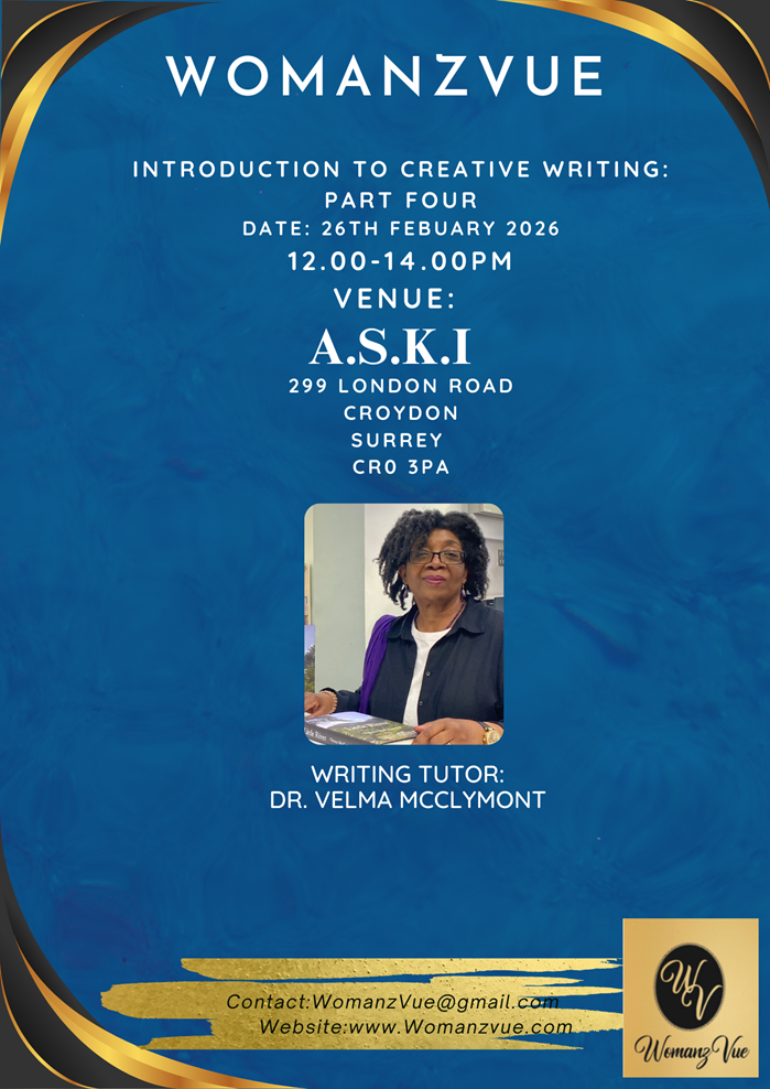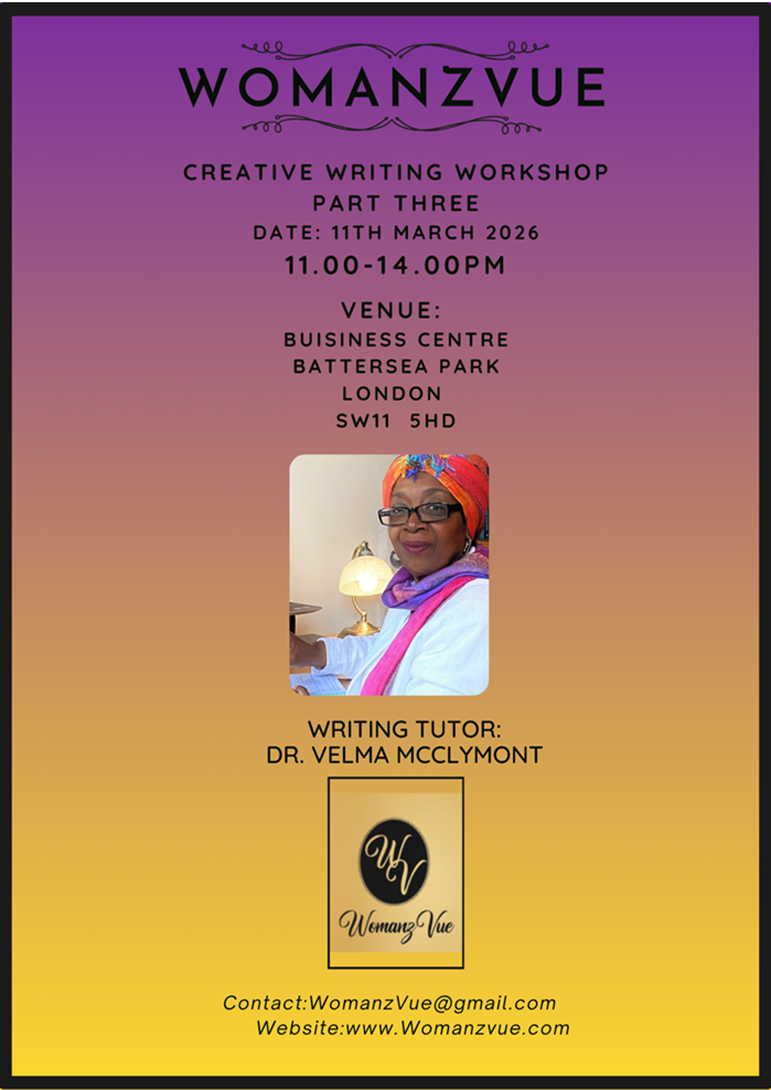 As a womanist writer/mentor/literary activist, Dr McClymont uses WomanzVue to provide a safe space for established and up-and-coming Black writers to promote their publications. Working in partnership with external agents, and in her role as creative writing tutor, Dr. McClymont regularly facilitates creative writing courses in libraries and community settings.