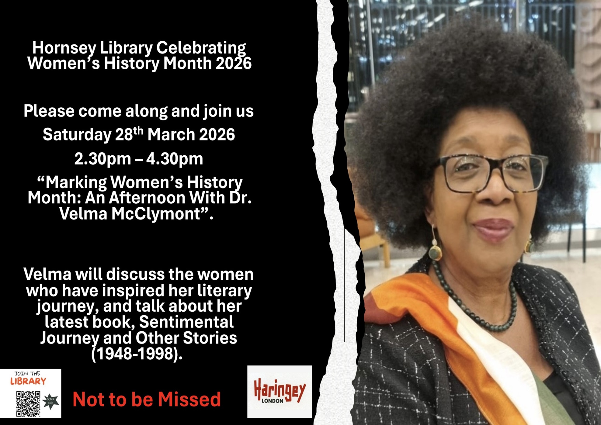 Mon 16th Oct 2023: Black History Month, Balham Library “Saluting Our Sisters” In Conversation with Dr Velma McClymont