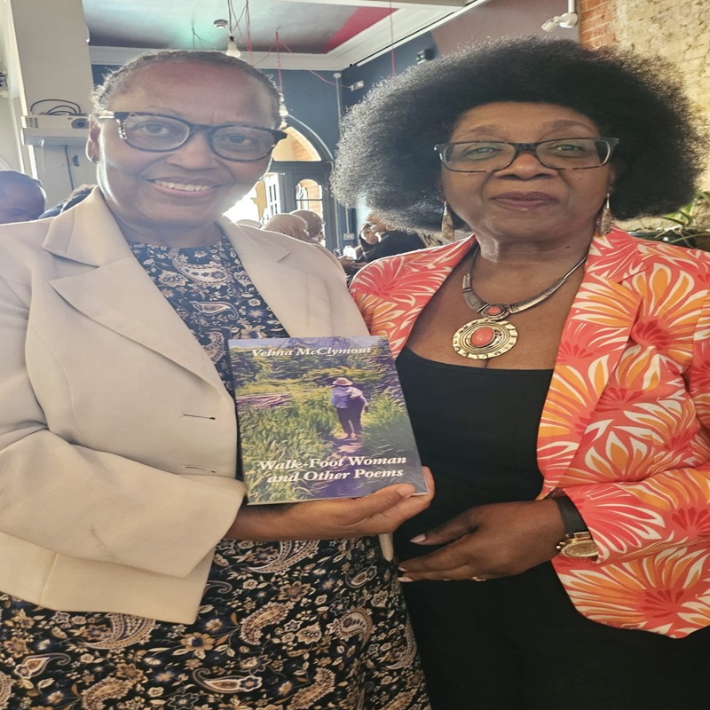 Dr. Velma McClymont Receiving Belated International Women's Day Phenomenal Woman Author/ International Woman Award from the June Daly Foundation for Humanity. Award Presented by Dr. Reem June Daly, Founder of Miss Jamaica UK.