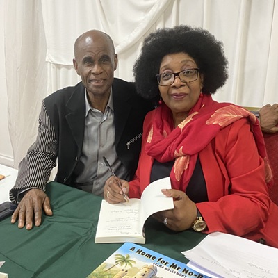Dr. McClymont with Bookseller/Publisher, Garfield Robinson.